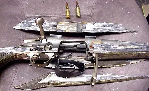 The .223 WSSM and 6mmBR Disaster Under most circumstances, shooters don�t have to worry about chambering the wrong cartridge into the wrong rifle. After all, the cartridges are well marked and we all know which rifle we are shooting on any given day. In many cases, incorrect cartridges cannot be chambered--larger cases will not fit in smaller chambers, for example. No problem! That being said, I can tell you that even an experienced, careful and normally safe shooter can make a mistake. The following is an account of just such a mistake that could have resulted in death or dismemberment. Fortunately, the shooter was not hurt, but the rifle was completely destroyed. Last year, a friend purchased a Savage Precision right bolt, left port, single shot bolt action in 6mmBR Norma. It was an incredible prairie dog gun and he spent the summer burning powder and busting dogs. In October, he purchased a stainless steel Browning A-Bolt Varmint in .223 WSSM. The weather in the upper Midwest turned sour by the time he got the brass tuned up and he only got to fire it a few times before he was �socked in� for the winter. Thus, he spent his evenings loading ammo for the spring thaw. During a break in the weather, he grabbed both rifles and a couple of bags of .223 WSSM and 6mmBR cartridges and headed to the range to check out his new loads. In case you are not familiar, the 6mmBR is smaller in diameter and a mite shorter than the .223 WSSM. Because of this, it will chamber in a .223 WSSM, but the .24 caliber bullet is too big for the .22 caliber bore. That is what happened to my friend. The rest is history; when he squeezed the trigger, all hell broke loose. The entire bottom of the rifle blew out, including the magazine assembly. The explosion actually cut the stock into two pieces. However, the bolt held and amazing as it may seem, the .243 bullet was �swaged� right out of the .223 barrel. ![]() Now, realize that my friend has been shooting all manner of firearms, safely, for over half a century. He is meticulous, thorough and conscientious in his approach to reloading and shooting. However, he made one mistake. He put some lose 6BR cartridges in a baggie as he packed up from a prairie dog hunt last summer, without noticing that the baggie was marked .223 WSSM in black marker. Then, when the break in his winter weather came, he grabbed the bag, believing it to be the WSSM cartridges and didn't check the head stamp. Couldn�t happen to you? How many times have we emptied our pockets of cartridges and dropped them into a plastic container on the shooting bench? How many times have we set down to a marathon reloading session, loading several calibers in a row? How many times have we put the wrong bullets, cases or primers into the incorrect container? My point is that even the safest of us can make a mistake. So, look at the picture above and take a bit more time when you reload your ammunition at home or chamber a round in the field. It might save your life. |