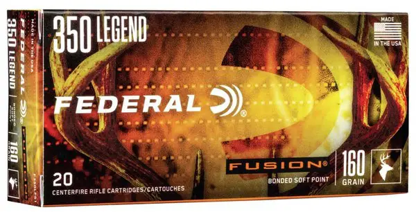 On of the best (at least on paper) is the Federal Fusion Rifle 350 Legend Part # F350LFS1. It is a 160 grain bullet at 2300 fps, with a .259 G1 static BC. Federal says 1600 fps is the minimum strike velocity for terminal performance. I presume they mean reasonable bullet deformation, often called “expansion.” It is hard to call the 350 Legend a wonderfully impressive load, as it isn't. After 215 yards, strike velocity drops down close to an ethical minimum level and wind drift becomes an issue as well. G & S Online Members can refer to Chuck's expanded rifle ballistics summary. https://www.chuckhawks.com/subscribers/tables_charts_lists_page/rifle_ballistics_summary_exp.htm Six inch kill maxiumum point blank range and basic exterior ballistics follow.