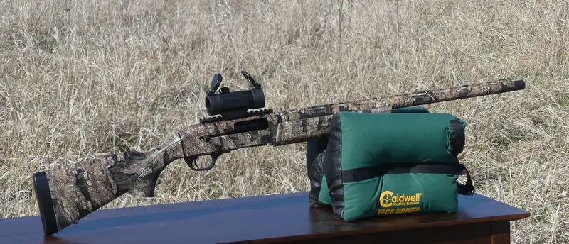 As far as the supplied TruGlo Red Dot, so far it works quite well except that the scope caps blow off easily. I'll either glue them on or just not use them. I am a perpetual skeptic when it comes to inexpensive Red Dot scopes. Too many don't hold their zero, are too bright or not bright enough, some fog, some are easy to leave on, some have erratic battery life, and so it goes. It is beyond the scope (pun int.) of this review to torture test or destructively test this Truglo Red Dot. So far, with a variety of loads up to 2 oz. payloads, it has held its zero and it is plenty bright enough for full daylight use. Out of the box, this V3 was dead on at 40 yards with no adjustments made whatsoever. THE BEST TURKEY LOADS