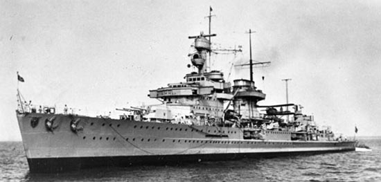Upon completion in 1944, one of the two Swiftsure class was transferred to the Canadian Navy and named Ontario. As with all cruisers during WW II, the light AA armament was progressively increased on these ships. Swiftsure first received 22-20mm light AA; in 1945 these were removed and replaced by 13-40mm single mounts. Ontario was similarly upgraded, but retained six of her 20mm guns, as well. The Swiftsure class was not as well armed as the American Cleveland's, but they were more seaworthy, carried less top weight and were probably better overall ships. More importantly, they were generally more capable than the Axis light cruisers, with the possible exception of the Italian Abruzzi class, which had been neutralized by the time the Swiftsure's went into service. Neither ship was sunk in action and both served the Royal Navy post-war. Ontario was sent to the breakers in 1960, followed by Swiftsure in 1962. Italy ![]() The two ships of the Abruzzi class represented the newest Italian 6" gun cruisers to serve in WW II. The follow-on Costanzo Ciano class (two ships), ordered in 1939-40, was cancelled before being laid down. Since the end of the First World War, Italian light cruisers had been gradually transitioning from very fast, but not very capable, destroyer killers into good all-around cruisers. The Luigi Di Savoia Duca Degli Abruzzi and Giuseppe Garibaldi were the final step in that evolution. At a standard displacement of 9440 tons, they were big enough to carry 10-6" guns in four turrets, a twin turret in the "B" and "X" positions superfiring over a triple turret in the "A" and "Y" positions. They also were armored to contemporary cruiser standards, had a good AA battery and adequate range for Mediterranean (or even Atlantic) operations. Here are the specifications for Abruzzi.