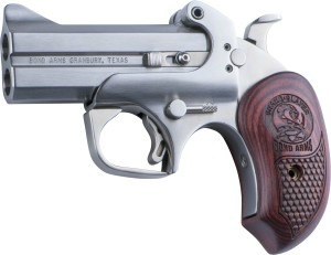 Most of the competitive shooters that use the Bond derringer set the pistol to shoot the bottom chamber first. By selecting the bottom chamber first, the pistol recoils straight back with practically no muzzle flip, allowing a faster recovery time for the second shot. Specifications
