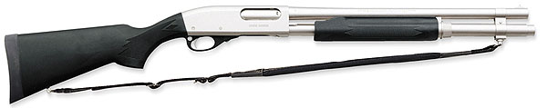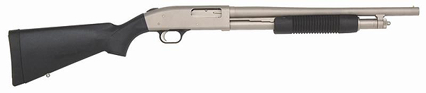 Similarities Both are 12 gauge pump guns with streamlined receivers, short barrels, 3" chambers, hollow black synthetic stocks with visible mold lines and specially coated metal parts to resist saltwater corrosion. The pump handles are grooved for a secure grip. The trigger guard assemblies are black plastic, similar to the stock material. Both guns balance right at the front edge of the receiver, for a slightly muzzle heavy feel when empty that is accentuated when the magazine is full. These Marine shotguns are equally useful for terrestrial defensive shotgun applications, being the same (except for color) as tactical black versions of the Model 500 and Model 870, only more rustproof. Mossberg calls their patented metal protection Marinecote and they don't reveal exactly what it is, but it works. Remington's process is stated to be electroless nickel plating, which also works. The guns are protected inside and out and have a good reputation among long time users. These metal finishes are matte silver in color, which contrasts with the black plastic stocks and is more attractive than the usual matte black tactical shotgun finish. The dull silver barrels are also easier for the shooter to align at night. Sighting is by means of a shallow groove in the top of the receiver and a metal bead front sight. The slide handle connects to the action with dual action bars in both guns. Most internal parts are formed from sheet metal stampings. The trigger group can be removed from either gun by punching out one (Mossberg) or two (Remington) large pins that are designed for easy removal. Shells are loaded from the bottom and eject from the right side of the receiver. The magazines can be topped-up with the chamber loaded and without taking the gun out of action. Both guns shoot to the point of aim if the stock fits the shooyer. The barrels are straight cylinder bore, which seems to be the norm for tactical shotguns. Even so, you must aim carefully at a specific target, as you would with a rifle, if you expect to score hits. At normal shotgun ranges, even with buckshot, there is not enough spread from a single round to hit more than one human size target, despite what you may have seen in the movies. Nor will the impact blow a bad guy off his feet and through the nearest window, we are sorry to say. Both guns are chambered for 3" Magnum shells. However, we recommend shooting standard velocity (not magnum) 2-3/4" shells to help keep recoil at tolerable levels. The 7.5 pound Remington gun is simply not heavy enough to temper the recoil of 12 gauge Magnum shells and the lighter 6.75 pound Mossberg is even worse in this regard. 12 gauge, 2-3/4" and 3" magnums kick very hard and this slows recovery time for subsequent shots. Tactical shotguns need to be controllable and standard 12 gauge loads pack plenty of stopping power. Buckshot is the most common defensive shotgun load, although bird shot is sufficient at typical indoor ranges and Foster type rifled slugs can be used in the cylinder bore barrel if you need more penetration or longer range, for example to punch through the fiberglass hull of an aggressor vessel. G&S Online owner Chuck Hawks kept a bandoleer with all three types of ammunition available aboard his small cabin cruiser. Because both guns are so popular, plenty of after market accessories are available. These range from tactical flashlights and lasers that attach to the front of the magazine tubes to replacement buttstocks and pretty much everything in-between. Differences Mossberg provides shotguns to the U.S. military. They claim that only their Model 500/590 tactical shotguns fully meet or exceed the U.S. military MilSpec 3443 requirements for endurance, chemical resistance, drop tests, patterning, parts interchangeability and quality assurance. Advertised features include an anti-jam shell elevator and dual extractors for reliable operation. The Remington 870 uses a single extractor and a more conventional shell elevator. Neither shotgun, however, jammed in our testing or has ever had a problem functioning. The Mossberg's shell elevator remains up, tight against the bottom of the bolt, when the gun is cocked and ready to shoot. It only drops down to elevate a cartridge as the action is pumped and immediately returns to its "up" position at rest. The Remington's shell elevator is down at rest. It only moves up to elevate a shell to the chamber when the action is operated and immediately drops back down. There is not a big difference, but we feel the Mossberg is easier to load, because its shell elevator is out of the way. The 870's receiver is machined from a block of steel. The 500's receiver is aluminum alloy. Since the bolts of both guns lock into a barrel extension, receiver strength is not an issue. The aluminum receiver is makes the Mossberg gun lighter, but we like the solid feel of the Remington and the extra weight helps reduce recoil. The top of the Mossberg's receiver has longitudinal grooves to break up reflected light; the Remington's receiver does not. We like the grooves. Operating (pumping) the actions of these guns feels different. The Marine Magnum's pump action has less initial resistance, but a little more resistance throughout the stroke. The Mariner has more resistance at the start and for the first half of the stroke, but when that resistance is overcome, the handle comes back more easily the rest of the way. We slightly prefer the feel of the Remington Marine Magnum's action, but could detect no difference between the two in operating speed. The 870's trigger pull measured a smooth 3.75 pounds per our RCBS pull gauge. The 500's trigger pull was much heavier, at 7.75 pounds. The Mossberg trigger is wider and smooth with more curve; it feels better against the finger, but the heavy pull makes it clearly inferior. The trigger pull is one of the most obvious operational differences between the two guns. The Mossberg 500 safety is a plastic slider located on the top re
