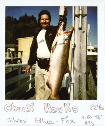 That's me holding a 22 lb. Chinook salmon I caught trolling a silver Blue