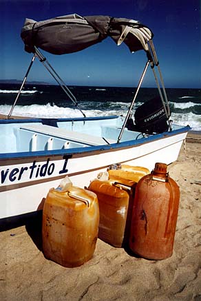A fishing panga on the beach at the Hotel Rancho Leonero, East Cape, Baja California, Mexico. A fine place from which to sample East Cape sportfishing. Photo by Chuck Hawks. |