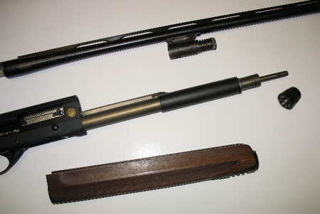 Today's Gas-Operated Shotgun Actions The heart of autoloading gas-operated shotguns is of course the gas action itself. Here is a look at the internals of the most popular shotgun actions. Beretta Urika 2 Gas System The evolution of the current compensating AL391 Urika system was introduced as an improvement upon Beretta�s 390 gas array. The 390�s system is essentially the 300 series Beretta gas drive with a secondary gas bleed added in an attempt to handle a wider range of gas pressures past the barrel�s gas ports. Where the 390 system has a spring loaded disc held against the newly ported barrel ring by the forearm nut, the 391 version makes the secondary bleed spring system integral with the barrel itself. Why Beretta went this route remains a bit unclear. Beretta has touted the thinner and �more slender� forearm of the 391 vs. the 390 as being desirable. That is a matter of taste, but it is hard to fathom that the 20 gauge 390 forearm was in any way bulky. The 391 forearm nut itself is a case of Italian engineering run amuck, containing no less than seven parts and is prone to Frozen Nut Syndrome. Not designed for easy maintenance, it gets filthy with extended use. Beretta�s owners manual is silent on the matter of cleaning, offering no help in disassembly. Beretta has reported that the nut (with its own spring array inside) is to stop point of impact shift due to barrel warping when heated. That may be, but a super-heated barrel on the clays course may be addressed by a quick loosening and retightening of the nut that takes only moments. Whatever the real reason might be, it is a remarkably odd and complicated solution. The secondary gas bleed spring, once hand-removable on the 390, is now smaller and affixed to the barrel ring. To properly access and clean this area, you can no longer use your fingers and common hand tools, but instead are directed to use the �valve hook wrenches� (spanner wrenches) supplied with the 391. If all of this is starting to give you a headache, I can promise that you are not alone. ![]() What can be fairly said is that the 391 system can go a very long time without maintenance in the 12 gauge platform, even if the design itself is user unfriendly and has the result of discouraging proper maintenance. I feel it is not an improvement over the prior 390 system (currently available in the Beretta 3901) and can be considered a negative for many shooters. In the case of our test gun, this improvement failed to stop the action from frequently jamming. Browning Silver Gas System The Browning Gold/Silver once-piece gas valve, dubbed the �Active Valve� by Browning, is one of the most modern gas actions available on shotguns, having made its debut in 1994. Over the last 15 years it has developed into what I consider to be the best semi-auto gas system on the market. I am not privy to the fine points and running production changes of the Gold system, but I can tell that there have been refinements. I have been advised that older gas guns were ported for lead loads, current gas systems for steel, but I am unclear as to exactly what that means. SAAMI gives shotshell manufacturers 12,000 PSI or so to work with and H. P. White data shows that 2500 - 3000 PSI is often what is left near the muzzle. The exact pressure past the ports is something that Browning and others monitor. The beauty of the Gold system is one valve assembly, no loose O rings or concoctions of loose springs. I can�t call the Gold self-cleaning, but what residue remains after firing forms right on the magazine tube, making it very easy to get to and wipe off. ![]() The forearm nut is just a nut, the tube that drives the action back is structural polymer and the Gold Active Valve has been the basic platform from which the Winchester SX2, SX3 and the Browning Silver have been derived. Although more versatile than either the Beretta or Remington 1100 systems, it appears that the major rework this system is being given in Browning�s Maxus extends it even further. Remington 1100 Gas System Since around 1963 the Remington gas system of the 1100 has been essentially unchanged. A look at the action shows a resemblance to the Remington 870 pump, with a metal housing over the magazine tube attached to a twin action bar assembly. The metal magazine tube housing (action bar sleeve) is driven backward by an O-ring (barrel seal) that tries to seal the exhaust gas against a pair of loose beveled washers (piston seal) that reside in front of the action bar drive. The O-ring is a sacrificial part. A captured O-ring, as in most gasketing applications, wears very little. A free, dynamic O-ring, as in the 1100 application, can tear or wear very quickly. It�s a good idea to keep extra O-rings in your range bag, as your 1100 is unlikely to cycle well without one. As long as an eye is kept on the O ring, the 1100 can be very reliable. The 1100 is not as adept at cycling a wide variety of loads as some actions, as evidenced by the �barrel seal activator� added on 11-87 models. ![]() A look at the Remington action shows why it is heavy compared to many: the steel receiver, the comparatively heavy steel action bar sleeve and the steel double action bars combine to give it more weight than the plastic and aluminum competition. Quality parts, made in the USA. What I appreciate most about the Browning and Remington treatments is that much of the fouling is easy to access and is quick to wipe away. This was true of the older Beretta 302-303 shotguns and even the 390, as compared to the current 391 Urika. |