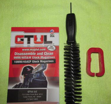 GTUL: Cleaning Glock Magazines the Easy Way![]() The heart of any semi-automatic pistol is its feed system, the detachable box magazine. In this respect, even the revolutionary Glock pistol�s plastic-cased / metal-lined magazine is, in both layout and general design, no different from other pistols. One thing their engineers came up with was a �belt and suspenders� approach to ensure that the detachable magazine floorplate would not accidentally come off. While it is nominally located and locked with the usual retaining plate with a central pin that protrudes through the floorplate, the Austrians also use a very small pair of molded tabs that extend outward from the tube on either side that also engages the floorplate. These tabs make it a pain to remove the floorplate using only a pin punch. When I was asked to perform a complete strip and clean of a pistol, I found this to be such an off-putting operation I took to simply using a volatile aerosol cleaner (Birchwood Casey�s �Gun Scrubber�) and blasted the mag while upside down to let it drain and air dry and called it good. For most folks, this would probably also be good enough, except for those of us who prefer knowing absolutely for sure that their magazines are internally clean. (Squeeze the magazine between thumb and forefinger enough to flex the sides away from the floorplate to disengage the tabs. - Editor.) Enter the �GTUL.� These American made products are ingeniously simple. They appear to be manufactured out of nylon plastic and are a semi-closed �U� in shape. Slide the device, molded logo �up,� over the top of the magazine, open end to the rear, and push it all the way down to the floorplate. Lightly squeezing the two arms together depresses the magazine body�s locking tabs away from the floorplate and then you insert a pin punch or the company�s combination punch/magazine cleaning brush into the retaining pin and slide the floorplate off. Elegant and simple, not to mention easy! A couple of quick runs with the brush through the magazine body removes powder and dirt. Brush the magazine spring and follower and reassemble. Done. The products come with the necessary tools for disassembly of the 9mm/.357SIG/.40S&W mag bodies, as well as one for the 10mm/.45ACP mag bodies. This item retails for just $21.95, or if one simply wants just the tool itself without the punch/brush, for $11.95. There is also one available for the single stack G36 .45ACP. You might scoff at the price for a molded piece of plastic, but trust me, if you�ve ever tried to pull a Glock magazine apart without it, you�ll say �Thank You!� the first time you use it. It works like a charm, no cursing required. I think that the magazine brush and punch is brilliant and will serve well for any magazine maintenance for your other auto pistols. The company also offers the �STUL,� a Slide Disassembly Tool for those of you who have huge fingers, maybe arthritic, and find the small disassembly tabs on the Glock frame difficult to use. It is currently the company�s best selling product. These are available through the company website at www.mygtul.com and the products are also carried by major retailers. |