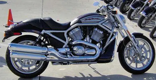 Essentially, what H-D did was reinvent the late, lamented (and also poor selling) 1977-1978 XLCR Cafe Racer. Sadly, for reasons mentioned above, the Street Rod suffered the same fate in the marketplace. It �s a pity that the Harley faithful are more impressed with chrome gew-gaws than riding dynamics. Boy Howdy, does the Street Rod deliver the latter. In spades. My one and only brief exposure to the Street Rod was when I considered buying one at the end of the production run. It was heavily discounted to just over $11,000. I didn't buy it and regret it to this day. My test ride was an un-chaperoned romp through some two-lane curvy country roads outside of town. It was an unmitigated blast to ride. It �s obviously not a sportbike, nor a cruiser. Not a sport-tourer and not really a standard, either. Some have called it a performance cruiser, but to me that appellation waters down its appeal. This bike offers it all to the mature rider who has owned and ridden them all. It goes, stops, steers and handles like no other Harley before or (sadly) since. There was a special synergy in how seamlessly it performed, befitting the modern product it is. Nudge the bar to initiate countersteer and the bike was utterly neutral in its response. Stable over bumps while leaned over at sane speeds. Roll the throttle on exiting a corner and the refined big engine rush of torque and horsepower is exhilarating. Trail brake in a corner and the bike did not stand up midstream. Those four piston Brembo calipers, lightweight rotors and good factory pads provided strong yet easily controlled effect. I wish that H-D had fitted the bike with wheels that take the much more common 120/70X17 front and 180/55X17 rear tires that all modern sport and sport touring bikes use. The reason is simple, as the manufacturers spend more time and money developing those sizes than any other for street bikes today. The slightly taller exhaust system makes fitting luggage back there a bit harder and it does need a slightly better seat and some wind protection. Other than that, I'd leave the blessed thing alone. I would ride it until the stock suspension got worn, then replace springs and shocks with premium aftermarket units. I would happily ride the wheels off it for as long as I wanted to swing a leg over a motorcycle. These observations were a bit shocking. A bone-stock Harley that worked so well that it was fine right out of the crate. I guess one other thing that might be an issue to some is that the valve lash inspection and adjustment must be carried out with the engine removed from the tight-fitting hydro-formed frame. I do suspect, however, that the liquid cooled mill would make those adjustments fairly rare. Available colors were a metallic two-tone black/white, blue/white and orange/white. I would probably choose the latter, not because it is flashy, but because it represents that the light was finally shining through all that black leather imagery the past five decades. All this genuflecting from a long time BMW owner (25 years, six-figure mileage) and a former monthly contributor to Motorcyclist magazine, is saying a lot. It is that good. At this point in my life, I am not easily impressed and have ridden a few. Here is hoping we get a reprise from the Motor Company soon, but I am not holding my breath. H-D seems to be refocusing on their core customer base to the extent that those of us who truly enjoy the congruency between a rider and the machine on an interesting road have lost a really good bike. Having long wanted a test ride on a VSRCR Street Rod, Harley's self proclaimed roadster, I finally got my chance in 2014. Team Latus Motors of Eugene/Springfield, Oregon took a 2006 VRSCR with approximately 4500 miles on the odometer in on trade. This barely broken-in motorcycle came with SuperTrapp mufflers, a clear fly screen and a maroon (red) and silver factory finish. (The fly screen looks kind of neat, but accomplishes nothing.) The paint scheme was the most attractive of the available VRSCR colors in 2006, in my humble opinion. I rode this very clean machine on the usual Team Latus test ride course, which includes a wandering country road with some nice straights and tight corners, a brief stint on a two lane highway and a sprint to the finish on the I-5 freeway. The VRSCR handled all of this with aplomb. My impression (without a side-by-side comparison) is that the VRSCR's 1130cc Revolution motor doesn't have quite the immediate roll-on torque, from idle to about 5000 RPM, provided by the 1550cc, stage three, Twin Cam mill in my personal ride, a previously reviewed Dyna Super Glide Sport (FXDX). However, even below 5000 RPM it provides very credible power and from about 5000 RPM to its 9000 RPM redline its 120 HP comes into play and rockets the Street Rod forward in very impressive fashion. The motor is definitely a winner. The Street Rod has the best suspension and brakes ever offered on a Harley-Davidson street bike. Although not adjustable, the fat, inverted front forks do an excellent job, as do the long travel, compliant rear shocks. The latter are user adjustable for preload. The bike's 40-degree lean angle is complemented by its neutral steering and calm demeanor when leaned into a corner. Due to its substantial weight and very long wheelbase, it doesn't have the quick steering of, say, a Triumph Bonneville, but it is predictable and rock steady. The triple disc Brembo brakes deserve special mention. They can haul the big machine down from high speed in impressive fashion. There is a lot of initial bite, unlike the brakes on classic Harley cruisers. So much initial bite at low speeds that the brakes took me by surprise, making my first stop (in the dealer's parking lot) rather jerkey. However, the VRSCR's brakes are quite controllable once you get used to them, which doesn't take long. They reminded me more of the brakes on my S3 Buell than any other bar and shield motorcycle I have ridden. Even with the Su