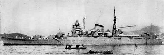 Heavy Cruisers of World War II (Part 3) By Chuck Hawks ![]() The four ships of the class were: Mogami, laid down in 1931; Mikuma, laid down in 1931; Suzuya, laid down in 1933; Kumano, laid down in 1934. The pause between the first two and the second pair is due to the problems encountered, as described above. The first pair were completed in 1935, and the second pair in 1937, all with their initial battery of 15-6.1in guns. The last two ships were laid down in 1942, but never completed. Ibuki began conversion to a light aircraft carrier after 1943, but was suspended in March 1945 when 80% complete. Hull No. 301 was canceled shortly after being laid down, and never received a name. After her 1939 modification, Mogami made 34.9kts on trials at 13,668t. Typical wartime modifications included an increase in light AA battery. Suzuya and Kumano had 20-25mm in 1943, 30-25mm in Jan. 1944, and 50-25mm by July 1944. The Japanese 8in/50 gun fired a 277lb AP shell at 2,756fps MV to a range of 32,150yds at 40 degrees of elevation (for complete specifications on all IJN guns, follow my Hot Link to Jonathan Parshall's "Imperial Japanese Navy" page). The Japanese 8in AP shell proved disappointing in service, often failing to explode. It is perhaps worth mentioning that, throughout the war, the gunnery of Japanese heavy ships generally failed to meet expectations. On the plus side, the Mogami class, like most Japanese cruisers, had a very heavy battery of torpedo tubes. And they carried the 24in Type 93 "Long Lance" oxygen fueled torpedo. The Type 93 had a range of 22,000yds at 49kts, three times that of contemporary U.S. 21in torpedoes, and over twice that of the British Mk IX. It delivered a 1,210lb explosive charge (about 50% heavier than the Mk IX). Furthermore, Japanese ships carried reloads for their torpedo tubes (a torpedo attack was a one shot proposition in other navies). In the pre-war years, the IJN worked hard to develop and hone superior torpedo attack techniques (this at a time when the USN was determining that cruisers should not carry torpedoes!). All of this paid off in a big way with spectacular victories in the Java Sea, at Savo (the worst defeat in U.S. naval history), and other places. All led active wartime careers, Mogami's being particularly interesting. On 28 Feb 1942 she was covering transports off Java as part of the Western Covering Group, when the cruisers USS Houston and HMAS Perth (having survived the Battle of Java Sea the day before) attacked the convoy. Mogami and Mikuma engaged the allied cruisers and, helped by Japanese destroyers in the area, sank them both in the Battle of Sunda Strait. The Japanese cruisers' gunfire on this occasion was reported as not being particularly accurate, but overwhelming. Both allied cruisers were ultimately sunk by torpedoes, after being shattered by gunfire. By April 1942 she was in the Indian Ocean supporting the Japanese fast carrier task force that was mauling the Royal Navy's Indian Ocean squadron and sinking the carrier Hermes, and heavy cruisers Cornwall and Dorsetshire. All four sisters were in the Battle of Midway, in early June 1942. After the debacle of the carrier battle, Admiral Yamamoto canceled a scheduled bombardment of Midway Island by the four heavy cruisers of the Mogami class. Mogami and her sisters were retiring at high speed when Mogami failed to react to a sudden sharp course alteration, and rammed Mikuma. Mogami's bow was smashed, and Mikuma had a ruptured fuel tank. Their speed was seriously reduced, and while Suzuya and Kumano fled safely beyond the range of U.S. planes, the morning found Mogami and Mikuma limping along, trailing oil, and still within range. Planes from Midway located and attacked the damaged cruisers, and planes from Spruance's carriers sank Mikuma and gave Mogami a pounding. As a result of Midway, Mogami was out of action until April 1943, and when she emerged from the repair yard she had been completely rebuilt again, this time into a hybrid cruiser-seaplane carrier. "X" and "Y" turrets were removed and the aft third of the ship became an aircraft handling deck, with two catapults. She could carry 11 seaplanes. Due to the shortage of aircraft, she never carried more than 6. She was sent to Rabaul, where she was again damaged by U.S. carrier planes. Her final major engagement was the night Battle of Suragao Strait, part of the overall operation known as the Battle of Leyte Gulf, in late October 1944. The Japanese plan, named SHO-1, was intended to break up the U.S. invasion of the Philippines. It was put into operation as soon as the U.S. amphibious invasion commenced at Leyte. In brief, this complex plan consisted of three major naval forces, a Northern Force, a Center Force, and a Southern Force. The Northern Force of 18 ships including the four available aircraft carriers (stripped of their planes), two hybrid battleship-carriers, 3-CL, and 9-DD, was to slip into position about 200 miles north and east of Cape Engano, Luzon. It's job was to decoy the U.S. 3rd Fleet (Admiral Halsey's fast carrier task force, which was covering the landings) north and away from the beachhead at Leyte Gulf. It was accepted that the Northern Force would be decimated. This sacrifice was made to allow the Center Force (5-BB, 10-CA, 2-CL, 14-DD), the main battle fleet, access to Leyte Gulf. They were to steam northeast from Brunei Bay, Borneo, weaving through the middle of the Philippine archipelago, and then through San Bernardino Strait to loop around Samar, and enter Leyte Gulf from the east (Pacific Ocean) side. Once in the Gulf, they would destroy the American transports and supply ships and shell the beachhead. The Southern Force, split into two autonomous groups (2-BB, 1-CA, 4-DD + 2-CA, 1-CL, 4-DD), was to enter Leyte Gulf from the south, through Suragao Strait, catching the U.S. ships in the gulf in a pincer. The Center and (dual) Southern forces would be entirely without air cover, which is why the North
