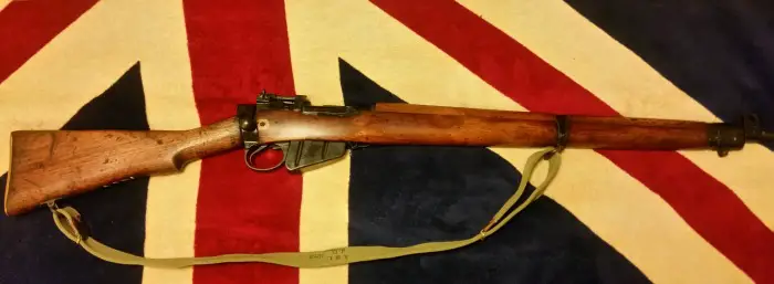 The Lee-Enfield No. 4 MK 1/2 By David Tong ![]() After WWII, the Royal Ordnance Factory Fazakerley was the sole facility used by the British to rehabilitate rifles tired by five years of arduous service. The example I am reviewing is a representative of what the armorers there performed. Originally a standard No. 4 rifle, its original designation was No. 4 Mk I and this, plus its serial number, was stamped into the left rear receiver bridge just below the rear sight. This serial number differs from the one it was given during its rebuild. Items that were replaced included the complete bolt, so the receiver was renumbered with the new number of the bolt. The original model and serial were crudely electric pencil lined out and a new one was placed further forward on the left receiver wall. Another new serial number was stamped onto the bottom of the fore end. The new designation is the title of this article. It represents a minor technological upgrade of the No. 4. All Lee-Enfield rifles through the end of WW II had their triggers pivoting from the trigger guard / bottom iron. While this might not seem to be a big deal, in humid or rainy climates it was. When wood gets soaked, it can expand and this can change the trigger pull. This was most noticeable during the Burma and SE Asian campaigns. The "1/2" designation involved the installation of a small steel block onto the otherwise stock No. 4 receiver, which the trigger was then hinged on via a cross-pin. (See the article Lee-Enfield No. 4 MK 2.) This metal block was not completely fitted when installed. It was precisely drilled after installation to ensure the perfect alignment of the trigger and sear engagement, thereby providing the best possible trigger pull. This isolated the effect of moisture by changing the direct engagement and disengagement of the trigger on the cocking piece and sear of the bolt. Other repairs included new wooden blocks at the butt stock heel, around the lateral rear cross-screw and escutcheon near the butt stock socket, on the right side of the trigger guard and near the left receiver ring. These may be simply cemented into place, or attached with oak dowel pins plus cement in larger pieces, such as that of the butt heel. Curiously, there appears to be a nearly mint five-groove barrel in my sample rifle. It shows no obvious throat erosion or pitting from corrosive priming or lack of care. No. 4 rifles wore three main types of rear sights. The first was similar to what the later MK 2s wore, a finely machined ladder type aperture with a click adjustable knurled knob for fine elevation adjustment. The second type was used on the MK 1*, a very simple, L-shaped, two position aperture (similar to that of the early M16 rifles) with one aperture set for 200 yards and a higher one with a smaller aperture set for 500 yards. This example of the MK 1/2 again wears an adjustable Mk II ladder, but with simple stamped construction and engraved range markings from 200-1,300 yards. Elevation is performed by a small spring-loaded detent tab that is much faster to use than the fine-thread Vernier click-adjustable screw of the original sighting system used on the first No. 4s, as well as the final No. 4 MK 2. A downside is that it is quite easy to inadvertently nudge the range setting. No No.4 rifles had rear sight incorporated windage adjustment. This was performed by moving the front sight (available in five heights) laterally in its dovetail after zeroing with the issue Mk VII cartridges. This is not an unusual arrangement. Mauser 98s, Russian Mosin-Nagants and Japanese Arisakas used a similar method to adjust windage. The trigger pull is decent, probably about 4.5 pounds with the usual two stage pull common to military service rifles of the period. The first stage also draws the striker back roughly 1/16 inch to full cock. The exterior of the action is military rough with a "blackened oil" surface covered with a baked-on black enamel topcoat. The interior machining is quite smooth and maintains the slick bolt-throw for which these rifles are known. The only bolt actions I am personally familiar with that are smoother are the US Krag-Jorgensen (also a rear-locking design), the Italian Mannlicher-Carcano and the Austrian Mannlicher-Schoenauer. The idea behind this forward-through-repair process was one of postwar economy. Britain was utterly drained after the war and there was no money available for new small arms until the late 1950s. After the end of the war, roughly from 1948-1954, the Royal Ordnance Factory Fazakerley carried out extensive depot-level repairs on small arms and even they suffered from labor disputes and strikes. It is said that the goal was to provide a rifle with approximately 80% of its service life restored. The armory generally ensured that small parts, such as the hand-guard bands, sling swivels, rear sight and other parts were of Fazakerley manufacture. This was indicated by small upper-case "F" stampings. This particular rifle was originally made at Fazakerley. It was missing its complete rear swivel assembly, its front swivel and its sling. Who knows what a prior owner was thinking, removing the only decent way to carry a piece that weighs nearly nine pounds. It certainly did not leave Fazakerley that way! These I replaced at slight expense from overseas vendors. A few shots to confirm point of impact were taken at 100 yards with factory Remington Express 180 grain Core-Lokt round-nosed, soft-point ammunition. Then it was off to the hunting field for the all but invisible Oregon black tail deer the first week of October. Conditions were cloudy with periods of rain and temperatures in the mid-50s. I noticed some reluctance to feed the round-nosed ammunition smoothly. I have heard that the magazine's feed lip tabs can be gently bent to correct this, but I haven't done so. I simply switched to the more common spitzer bullet design, which worked without issue. Alas, several trips to the Coast Range proved