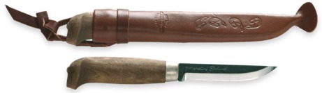 Marttiini Lynx Lumberjack Knife By Gary Zinn ![]() Founded by blacksmith, preacher and Christian author Janne Marttiini, Marttiini of Finland (www.marttiini.fi) has been making knives of the Finnish puukko and Saami types since 1928. In 2005, Rapala VMC, the fishing and outdoor gear conglomerate, purchased Marttiini Ltd. from the Marttiini family. Marttiini produces knives bearing its own brand name and for over 50 years has also made Rapala brand knives. Marttiini knives are divided into seven categories, six with fixed blades and one group of folders. In the fixed blade categories, those labeled Outdoor and Traditional are mostly puukko and Saami style knives, while the Hunting knife category leans toward more contemporary designs. Marttiini knife offerings range from utilitarian to fancy. I chose a no frills utility knife for this review, a model called the Lynx Lumberjack Carbon Small (pictured above). This knife follows the traditional design of puukko type working knives. Specifications