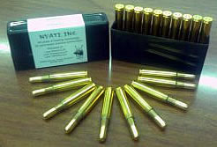 As you can see, our Browning test rifle shot just fine with the Nyati reduced recoil ammunition. The point of impact for all three shooters was about 4" to 4.5" above the point of aim and perhaps 1" to the right. We had no trouble keeping the bullets on the paper. Your point of impact will vary, depending on your rifle, the load for which it is zeroed and how it is sighted-in. Having two cartridges left from our box of 20, Chuck and Nate each fired a single round offhand to experience the recoil as it might feel in the field. (Usually less recoil is perceived when shooting from a standing position than when shooting from a bench rest.) Both agreed that this is a mild load that is pleasant to shoot. Unfortunately, at over $5.00 per shot ($103.00 for a box of 20 at the time of this review), Nyati cartridges are probably too expensive for most shooters to plink with, although it would be fun. Loaded with an expanding bullet, such as the Speer 400 grain FNSP .45-70 bullet at .45-70 velocities that Chuck uses in his .458 Magnum reduced recoil handloads, it would be entirely practical to hunt woodland deer with any of the Nyati calibers. (See the articles "Reduced Recoil Reloads" and "Compared: The .45-70 Government and .458 Winchester Magnum for North American and European Hunting" for more information.) We would like to see Nyati introduce reduced recoil hunting loads using expanding bullets for these big boomers. We think, based on our limited experience, that Nyati is loading good ammunition and have a useful product that can be of great benefit to the owners of safari rifles. If they could bring the price down to approximate that of standard Winchester Super-X or Remington Express factory loads in these calibers, we think they could have a real impact on the market. Nyati ammunition may be purchased online at the Nyati web site: https://nyatiinc.com/ |