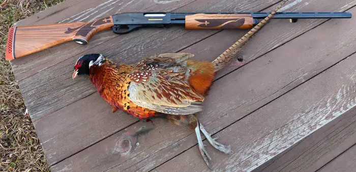 The 20 gauge 870 American Classic that is the subject of this review weighs 6-1/2 pounds. It is a very attractive repeater. The steel receiver and ventilated rib barrel are polished and deeply blued. There is a small center bead on the rib, something I personally find worthless, but at least it is small enough that it doesn't get in the way. At the time of its introduction in 1951, the Remington 870 had special features, such as a fast (for a shotgun) seven millisecond lock time. This remains faster than many repeating shotguns produced today. The superb trigger breaks between 3-3/4 and 4 pounds right out of the box. It is one of the best triggers I have used on a repeating field gun in several years. The action is exceedingly smooth right of out of the box. it almost shucks itself, with no noticeable stick-slip and no break-in required. Unlike alloy receiver shotguns, the action closes with a satisfying, steel on steel "thunk." Compared to many pump and autoloading shotguns, the safety button at the rear of the trigger guard is nicely oversized, as is the aluminum trigger guard. It is an obvious step up from the many plastic trigger guards with ugly mold lines. The slide release is also a bit longer than found on many slide actions, making it easy to use with cold or gloved hands. The walnut stock is gloss finished, complementing the barrel and receiver. What Remington calls their B-grade walnut is a lighter shade of walnut, with the forearm and the buttstock perfectly matched in color, hue and tone with distinct mineral streaks throughout. In an effort to reduce the manufacturing cost of the gun, many shotguns do not have no properly finished pistol grips, meaning no grip cap at all. In direct contrast to this, the 870 American Classic has a very nicely done white diamond grip cap set off by a white line spacer. The ventilated recoil pad also has a white line spacer, a feature not seen for a while. The cut checkering is clean, deep and sticks to your hands. It is a clear upgrade from the more common laser cut checkering. The machine engraving is also tastefully done, with a gold inlay of a dog on the left side of the receiver and a small gold "American Classic" banner on the right side of the receiver. It is tasteful elegance, a significant dose of sparkle without being ostentatious. It is enough to show the manufacturer cares about details and that you care as well, without being overpowering. This 870 carries, shoulders and swings beautifully. The included Full, Modified and Improved Cylinder Remchokes throw decent patterns. I used it to harvest the pheasant seen in the photo at the top of this page, so you can see it works in the field. It is hard to find fault with this shotgun. It looks great, carries great, works great, is essentially jam-proof, doesn't rattle and needs no aftermarket massaging to try to make it right. It is the type of shotgun anyone would be quite satisfied to enjoy today and to keep in the family for generations. It is everything that a quality repeating firearm should be. The ghost of Rudy Etchen is no doubt smiling. |