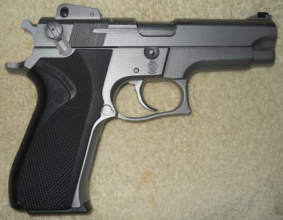 Smith & Wesson Model 5906 9x19mm Pistol By David Tong ![]() Recently the author has been doing a retrospective look at the high-capacity 9mm automatic pistol, and this article features the last and ultimate version of the Smith & Wesson M59. The template for the Wondernine was a double-action first shot, aluminum framed pistol with a magazine holding 15 shots, equipped with a slide-mounted decocker/safety. A little short history is in order. The U.S. military originally proposed a new service pistol after World War II, to be in 9x19mm caliber, with a double-action first shot capability. Army Ordnance was certainly aware of the German Walther P-38 handgun, but it preferred the simpler and more typical Browning-derived tilting barrel / enclosed slide arrangement. Smith & Wesson built prototypes during the late 1950s and early 1960s, after the military decided against fielding a 9mm handgun due to remaining WWII-produced stocks of M1911 pistols in .45 ACP. The pistol developed by S&W was called the Model 39 and it featured an aluminum alloy frame and a single column magazine, with an integral barrel feed ramp that eliminated the 1911's two-ramp system. The slide retained the 1911's removable barrel bushing. The S&W design also used broad cam and ramp systems along the barrel‘s sides that engaged similar cam surfaces on the interior walls of the frame, a system that is stronger than the more typical single lug and cam of newer pistols and simpler than the dropping block locking system of the P-38 and Beretta M92. Unlike the P-38 and its derivative M92, S&W moved all of the trigger lock-work into the frame, to better seal them against dirt. The M39 is known for having one of the most ergonomic butt shapes of all semi-auto pistols, fitting most hands well, and retained the 110-degree grip angle of the 1911. In addition to a slide mounted de-cocker and safety lever, the S&W pistols also featured a magazine disconnect system. Massad Ayoob has written about instances when a disarmed cop saved his or her life by hitting the mag release, instantly turning the captured pistol into a paperweight. As far as the author can recall, the M39 was the first pistol that utilized a full-length, steel recoil spring guide rod. This now nearly ubiquitous part can improve spring efficiency by up to five percent and can simplify field- stripping in many pistols. This pistol and the later, high capacity Model 59 were not designed with JHP bullets in mind. Their humped feed ramp shapes often either stopped the rather square nosed early JHP bullets at the base of the ramp, or made them skip upward into the chamber roof, causing malfunctions. As a result, police agencies often issued the pistols with ball ammo and we all know how well 9x19 ball works on unarmored human targets. S&W went back to the drawing board and by the early 1980's, the M39 and M59 were in their Second-Generation of production. Known as the “3-digit” guns, these pistols featured a straight feed ramp, slightly refined trigger mechanisms and eliminated the separate barrel bushing. The company also added a subcompact M469. The author once owned an example of this pistol. It’s relatively lightweight (25 ounce) and 11+1 capacity in 9x19 performed very well. Magazines loaded with both ball and two different JHP rounds could be rapid fired with no malfunctions, time after time. Accuracy also improved due to the fixed bushing and barrels were hard chrome plated for improved wear and reduced cleaning effort. There were still a few minor issues, mostly cosmetic and ergonomic. The M459 (alloy frame), 559 (carbon steel) and 659 (stainless steel) were rather fat, blocky and parallel-sided in feel and the hand position was too low on the grip frame to be ideal for rapid recoil recovery in rapid fire. Thus, in the late 1980s, S&W introduced the Third Generation autos. Probably the most famous example of these pistols is the M1076 FBI 10mm pistol reviewed elsewhere on this website, but their bread and butter pistol was the M5906 stainless handgun. Here are some M5906 specifications: