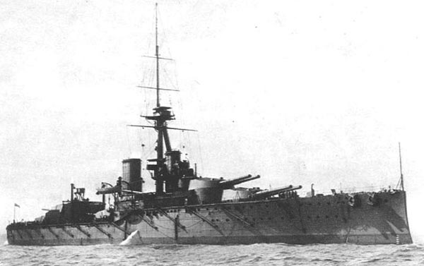 Invincible Class Hard on the heels of Dreadnought came another new, and in many ways similar, class of capital ship from the fertile mind of Lord Fisher. This was the Invincible class, Invincible, Inflexible and Indomitable, the world's first battle cruisers. The original battle cruiser concept was essentially the Dreadnought equivalent of an armored cruiser. The Invincibles were designed to out shoot and out run all existing armored cruisers. They were all big gun (12" main battery), four shaft, steam turbine powered ships similar in size to Dreadnought, but armored to resist cruiser, not battleship, gunfire. The primary differences were a longer and finer hull shape, a substantial reduction in armor protection and a big increase in horsepower, in order to achieve a substantial increase in speed. The thickness of the armored belt was cut almost in half and the horsepower almost doubled. The designed speed was 25 knots and this was exceeded on trials. The Invincibles were much more heavily armed, as well as better armored and faster, than any armored cruiser. They were also much larger and more expensive. Naturally, since the advent of the Invincible class made all armored cruisers obsolete, navies that wished to stay abreast of the latest Royal Navy developments needed battle cruisers of their own. Britain's main naval rival, Germany, commissioned the first response, the battle cruiser Van der Tann, in 1910. When used for the purposes for which they were designed, the Invincible class was very successful. This was demonstrated when Invincible and Inflexible ran down and sank Admiral Graf Spee's raiding force that included the armored cruisers Scharnhorst and Gneisenau off the Falkland Islands in December 1914. However, the Invincibles downfall was that they represented too much of a good thing. It seemed impossible for commanding admirals to resist including them in the battle line, where they were exposed to heavy caliber (not cruiser) shell fire that they were not designed to resist. The result was the explosion and loss of Invincible and two later Royal Navy battle cruisers during the Battle of Jutland. Inflexible and indomitable were paid off at the end of the Great War. Nevertheless, many important navies, including the American, Soviet, German, Japanese, Turkish and French, ultimately designed and/or operated battle cruisers. (See the article "Battle cruisers, Large Cruisers and Pocket Battleships of World War II.") ![]() BASIC SPECIFICATIONS