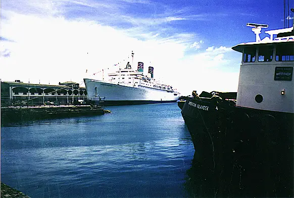 Independence, Hawaiian Islands cruise, 1998: SS Independence at her dock in Honolulu, Hawaii. |