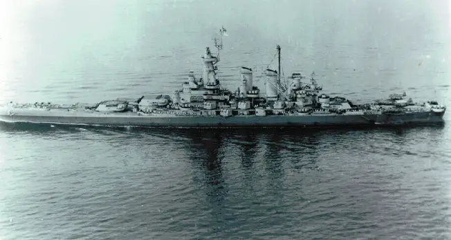 Because the war broke out and the Treaty lapsed while these ships were still under construction, they were allowed to grow above the old Treaty limit in displacement. They were to grow still more as the war went on and new equipment was added, particularly radar and more light AA guns (up to 65-20mm Oerlikon, eight octuple two pounder pompoms plus six quadruple pompoms and up to 14-40mm Bofors in quadruple and single mounts). By 1945 Anson's extreme deep load displacement was up to 45,360t. Stability suffered accordingly. King George V was completed in December of 1940, Prince of Wales and Duke of York in 1941, and Anson and Howe in 1942. POW was sunk at the end of 1941; the four survivors were broken up in 1957. They all had very active war careers. Their most spectacular moments were POW's fight against Bismarck in company with Hood, May 1941, in which POW was hit repeatedly, but none of her vital systems were put out of action by enemy shellfire; KGV's participation in the defeat and sinking of Bismarck a few days later (as Home Fleet Flagship); and DOY's defeat of Scharnhorst in late December 1943. The only wartime loss was POW, which (along with the battlecruiser Repulse) was sunk off the coast of Malaya by a series of air strikes made by large numbers of Japanese land based naval bombers on 10 December 1941. She became the first (but certainly not the last) battleship sunk underway at sea by aircraft. This event, more than Pearl Harbor, signaled the end of the battleship's years as the dominant class of warship. NORTH CAROLINA class ![]() The first pair of American treaty battleships were the North Carolina and Washington, laid down in 1937 and 1938 respectively. However, their story started earlier, in 1935, as they were the result of a long series of design studies and compromises. The requirement for fast battleships was becoming evident, forcing the USN away from the slow (23 knot), heavily armed and armored type it had traditionally preferred. The CNO (Chief of Naval Operations) expressed the view that was eventually adopted: enough speed to run down the fastest capital ships in the Pacific (the Kongo class, then rated at 26 knots). The four Kongo class battlecruisers were regarded as a particular "thorn in the side" by USN strategists in the years preceding WW II. This meant the new U.S. battleships should make a minimum of 27 knots. All subsequent U.S. battleships, except the special purpose Iowa class, would be designed to this standard. When polled, the senior officers with the Fleet favored the fast battleship by a nine to seven margin. The senior officers in the War Plans Division favored the fast ship by a greater five to one margin. In March of 1934, Japan had announced that she would not renew the naval treaties when they expired. As we have seen, the London Treaty of 1936, which was being negotiated as the North Carolinas were being designed, called for 14 inch guns and 35,000 tons, but had escalator clauses to allow 16 inch guns and 45,000 tons if a non-signatory did not abide by the spirit of the treaty. Japan's noncompliance triggered these escalator clauses in time to provide 16 inch guns for the North Carolinas, but not equivalent armor protection. The design was by then too far advanced to allow much change in the protection scheme. In fact, the 16 inch guns were only possible because the design called for 12-14 inch guns in three quadruple turrets and these had been designed with the same turret ring size as the triple 16 inch turrets BuOrd had wanted all along. BuOrd was not happy about reverting to the 14inch gun for the new battleships, or with the risks inherent in developing a quadruple turret. Japanese non-compliance allowed BuOrd to have its way and make America's treaty battleships the most powerful of the type. The complexity and evolution of the design selection process is interesting. The following information on this topic is summarized from Norman Friedman's definitive book on the subject U.S. Battleships - An Illustrated Design History. In all, 15 preliminary sketch designs were considered and variations of the most promising were analyzed. Each was identified by a letter of the alphabet. The preliminary design finally chosen for further development ("K") was a 30.5 knot proposal with nine 14 inch guns in three triple turrets, all forward of the superstructure (as in Nelson) and a 15 inch armor belt (immune zone 19,000-30,000 yards) on a 710 foot hull. Several months passed before it was discovered that this layout did not result in the weight savings envisioned. Sketch designs in the next step of the selection process, as the original "K" proposal was refined, eventually numbered 35! These were assigned Roman numerals. Variations in armament, armor, hull length, torpedo protection, speed, internal layout, in fact almost every specification, were explored. The first of this series were numbers I through V. In January 1936, Scheme IV was selected for further development. This design showed a 725 foot hull on which was mounted nine 14 inch guns and a 12.125 inch belt (immune zone 21,400-30,000 yards). The speed was to be 30 knots. However, the General Board wanted major changes, including 20 five inch secondary guns, rather than the 12 carried by design IV. This resulted in three further sketch designs: IV-A, IV-B and IV-C. None met the Board's requirements, particularly in terms of protection. By May 1936 the General Board relented on very high speed; 27 knots was perhaps adequate, if more armor could be worked in. Designs numbered up to XV-E had been explored by the middle of June 1936. On June 25, the Board issued new tentative characteristics. Now they wanted a 28.5 knot ship with 11-14 inch guns and 16 five inch secondary guns. The immune zone was to extend from 19,000 to 30,000 yards. This was a specification well balanced between speed, battery and protection. Preliminary Design responded with design XVI on 20 August 1936. This had a 714 foo