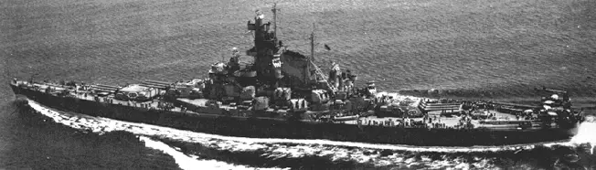 In appearance, North Carolina and Washington were handsome, well proportioned and well balanced ships with a flush deck and a conventional layout. Twin funnels, a graceful prow, a tall fire control tower and a cruiser stern were recognizable features of their design. I have always regarded them as the most handsome of all U.S. battleships (see my article "Great Capital Ships, 1920 to 1990"). North Carolina was commissioned on 9 April 1941 and Washington on 15 May 1941. Severe (unforeseen) propeller vibration problems on trials at speeds from 25-27 knots caused various propeller combinations (3, 4 and 5 bladed types of various diameters) to be experimented with. The North Carolina received the nickname "Showboat" due to her many trips in and out of New York harbor during these propeller trials. During December 1941, Washington made 28 knots at 42,100 tons and 27.1 knots at 45,000 tons at full power. Like all wartime battleships, the North Carolinas received increased electronics and AA battery as the war went on. By August 1945 the Washington carried 15 quadruple 40mm Bofors mounts, one quadruple 20mm mount, eight twin 20mm mounts and 63 single 20mm mounts. The best point of the class was probably their offensive firepower. Their main battery, with a broadside weight of 24,300 pounds, was second only to the Yamato class that were almost twice their displacement. They (and the similar South Dakotas) also carried the best secondary battery, the best AA battery and the best fire control of all treaty battleships. They were extremely maneuverable, with a tactical diameter of 575 yards at 14.5 knots. They had great range and endurance, again superior to the battleships of all other nations. They were seaworthy. Their underwater protection was superior to that of the other American 3rd generation battleships. They were later criticized for being "unbalanced" (armament vs. armor), but it must be remembered that, in fact, they were adequately protected. If they had been completed with 12-14 inch guns, as originally planned, they would have been "balanced" and no one would have complained. Substituting the triple 16 inch gun turret for the quadruple 14 inch gun turret on a one-for-one basis did not make the ships any larger or heavier; it just gave them a much more effective offensive punch. It was only the marked superiority of the American 16 inch gun and super heavy 2,700 pound shell (compared to the gun/shell combination carried by all other nations' Treaty battleships) that made them seem "unbalanced." A useful analogy might be this: which would you rather put your money on, a heavyweight boxer with a good chin and a good punch, or one with a good chin and a great punch? In theoretical comparisons made by BuShips in December 1941, the North Carolinas fared well against either King George V or Bismarck. Both ships served throughout the Second World War, participating in a great many campaigns in both the Atlantic and Pacific. They proved to be very satisfactory in service and were generally regarded as superior in operation to the very cramped South Dakota class that followed. The most significant moment of North Carolina's wartime service occurred when she was torpedoed by Japanese submarine I-15, on 15 September 1942. The torpedo hit on the left side just behind number 1 barbette (and abeam the forward magazine), blowing an 18x32 foot hole in the hull. This let in about 970 tons of seawater and buckled the second and third decks. Within minutes the ship was able to make 24 knots. After the incident BuShips stated that the underwater protection system had performed much as designed and no changes were indicated. The North Carolina class underwater protection was superior to that of the subsequent South Dakota and Iowa classes (which verged on being defective, due to unwise changes in the whole theory of underwater protection), although this was probably not realized at the time. North Carolina, the famous "Showboat," was the only U.S. treaty battleship retained in active service post-war. In 1961 she was stricken from the Navy list, but preserved as a war memorial at Wilmington, North Carolina, where you can see her today.Washington became the most successful American battleship of WW II. Her most glorious moment in the war came during the night of 13-14 November 1942, when she sank the Japanese battlecruiser Kirishima in a wild night action called the Second Battle of Guadalcanal. Kirishima and her accompanying cruisers and destroyers had just disabled the new U.S. battleship South Dakota when Washington slipped to within 8,400 yards of Kirishima and overwhelmed her with 16 inch and five inch shellfire. Washington was not hit in this action, which was primarily a tribute to American radar, fire control and the offensive firepower of the North Carolina class. It is interesting that Kirishima was one of the Kongo class battlecruisers that, back in 1935, had so markedly influenced the concept that eventually became the North Carolina class. Washington was sold for scrap in 1961. Washington served with the British Home Fleet in 1942, but despite the hopes and prayers of her crew, the German super battleship Tirpitz never came out to fight. I have always thought that if she had, Washington would have surprised a lot of people by taking her without too much problem. SOUTH DAKOTA class ![]() These four ships were the last of the treaty battleships. They were laid down about the time the war in Europe started and all were completed after the war in the Pacific had already begun. They were designed in accordance with the limitations of the London Naval Treaty, however, which is why they are covered here. The original plan was to build two more North Carolina class battleships in FY 1938. Due to pressure from the CNO a new type, which became the South Dakotas, was designed, scheduled for FY 1939. Preliminary design work began in March of 1937 and the characteristics of the new ships were approved in J