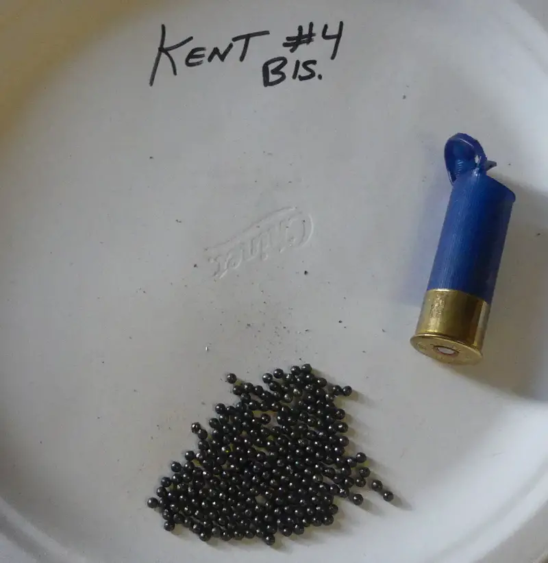 Above, a Kent 1-1/4 oz. Bismuth No. 4 shotshell. Am unbuffered load, the shot is erratic in size and shape, and has the unfortunate tendency to fracture in the barrel, embedding itself into the wad . . . and never leaving it as a result. When it comes to wounding ballistics, the most important things I've learned came directly from the late, great Dr. Martin Fackler. Shotshell ballistics are a mess, particularly due to chef's mix of shot types: now, hardly just lead and steel (soft iron), but bismuth, various tungsten alloys of different final densities, along with some interesting but strange duplex loads. So, what's the problem?